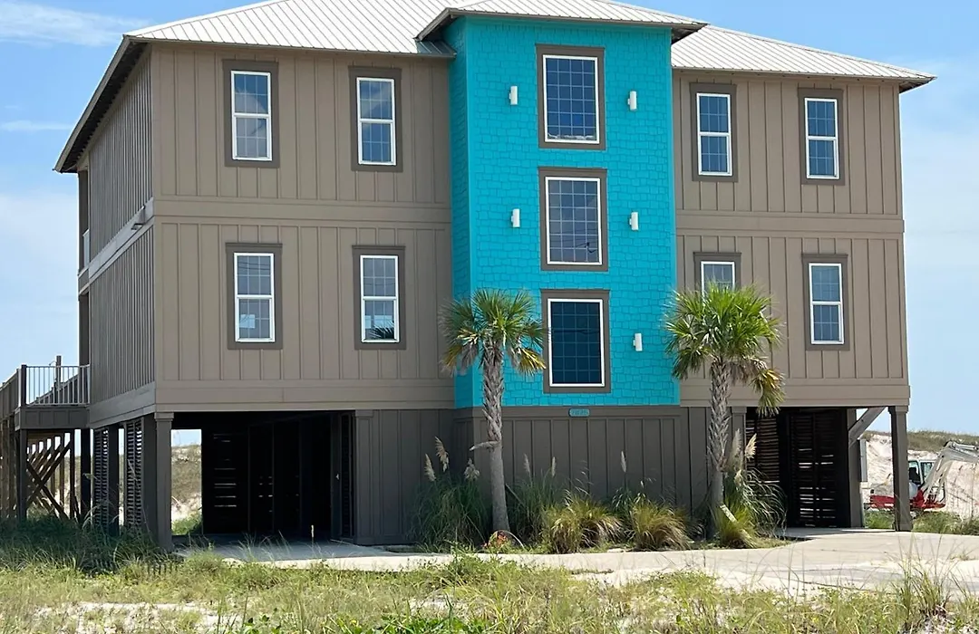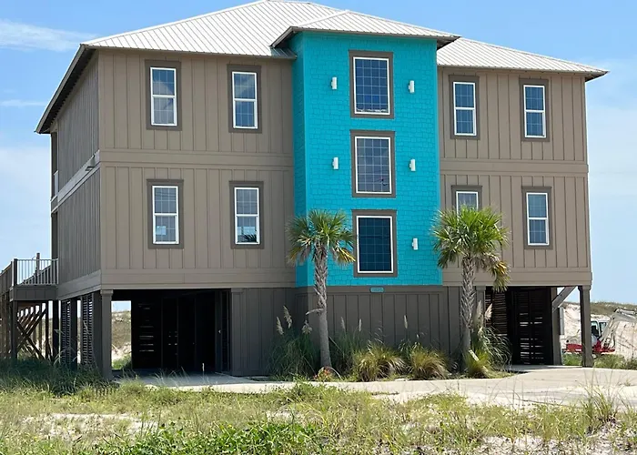 Beach Therapy By Gsvr - Beachfront Home With Pool - Free Activities And Golf Gulf Shores is located only 0.8 miles from the brackish Little Lagoon Lake and provides a private pool, ensuring a relaxing stay. Guests can enjoy snorkeling, diving, and mini golf at this Gulf Shores holiday home, located approximately a 10-minute drive from Bon Secour National Wildlife Refuge.
